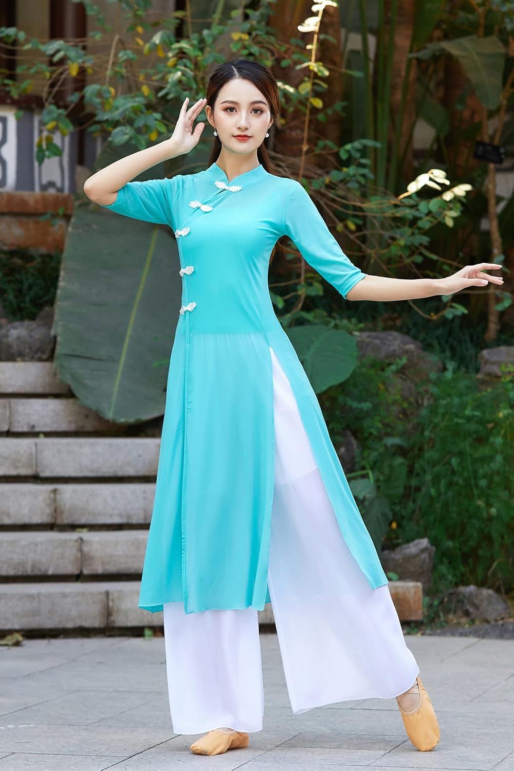 Materials Top: 95% Nylon / 5% Spandex; Pants: 100% Polyester Design Angcoco Women's Traditional Cheongsam Style Half Sleeved Dress+Inner Camisole+Chiffon Pants Set Made of lightweight soft and quick-dry wicking fabrics with breathability and good fit like a second skin, which is moisture wicking and keeps your skin dry Soft, comfy & stretch, relaxed slim fit, half sleeved, classic crew neck, front-side exquisite knot button decor, high side slit Occasions Great for Chinese Traditional Dance Training, Drama, Cosplay, Daily Wear etc. Washing Instructions Hand wash only. No bleaching. Line dry Size Guide Chinese tag size may slightly differ from your local size. Please carefully check & ensure your size prior to ordering and please allow 1-2cm error due to manual measurement Notes Please kindly understand that the actual item's color may slightly differs from the images due to the difference of shooting facilities or monitor settings Manufactured & sold by Angcoco. Comes with 100% satisfaction of after-sales services. Angcoco always strive to provide the best quality of products & services Package Included 1 x Half Sleeved Cheongsam Dress 1 x White Chiffon Pants 1 x Inner Camisole(The color of Camisole is different for different dress.White for Yellow&Green Dress,Black for Blue Dress,Red for Red Dress)