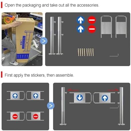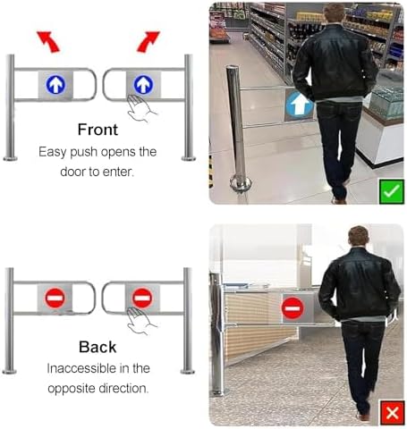 Enhance the flow of your space with our one-way metal swing gate, designed to optimize crowd management in various high-traffic environments such as retail stores, office buildings, and event venues. This innovative gate effectively reduces congestion and prevents reverse movement, making it an ideal solution for directing customer flow or managing employee access. Key Features: 1. **Automatic Rebound Mechanism**: The swing gate allows entry only from the front and automatically rebounds to a closed position after passage, ensuring smooth transitions. 2. **Durable Construction**: Made from waterproof and wear-resistant stainless steel, this gate is built to withstand daily use and maintain its appearance over time. 3. **Sturdy Design**: Equipped with spring-loaded doorposts for reliable automatic rebound, it remains securely anchored to the floor with expansion screws, preventing tipping even in busy areas. 4. **Easy Installation**: With a minimal footprint and straightforward drilling installation, this gate can be set up quickly and is ready for immediate use. Specifications: - **Name**: Entrance Swing Gate - **Material**: Stainless Steel Tubing - **Color**: Silver - **Height**: 100 cm (39.4 in) - **Post Diameter**: 7.6 cm (3 in) Ideal for a variety of settings including warehouses, construction sites, traffic guidance, gas stations, parking lots, and work zones, this swing gate is versatile and highly functional. Package Includes: - 1 x Market Entrance Gate - 1 x Installation Accessories Please Note: The gate must be manually opened upon entry and will automatically close after the individual passes through. If the swing arm is too long, it can be adjusted for optimal performance. Choose our metal swing gate to ensure efficient movement and enhance the safety of your space today!