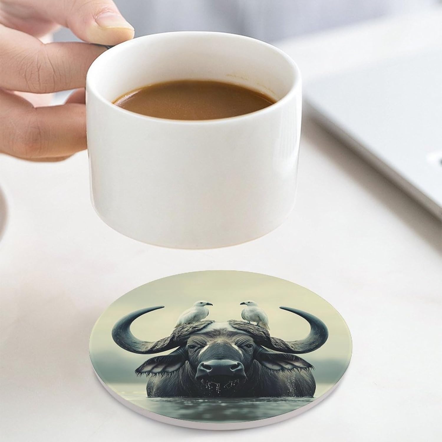 Ceramic Coaster with Cork Base Funny Absorbent Coasters Set Suitable for Kinds of Cups, the absorbent ceramic coasters comes with vibrant color and beautiful design, goes with everything