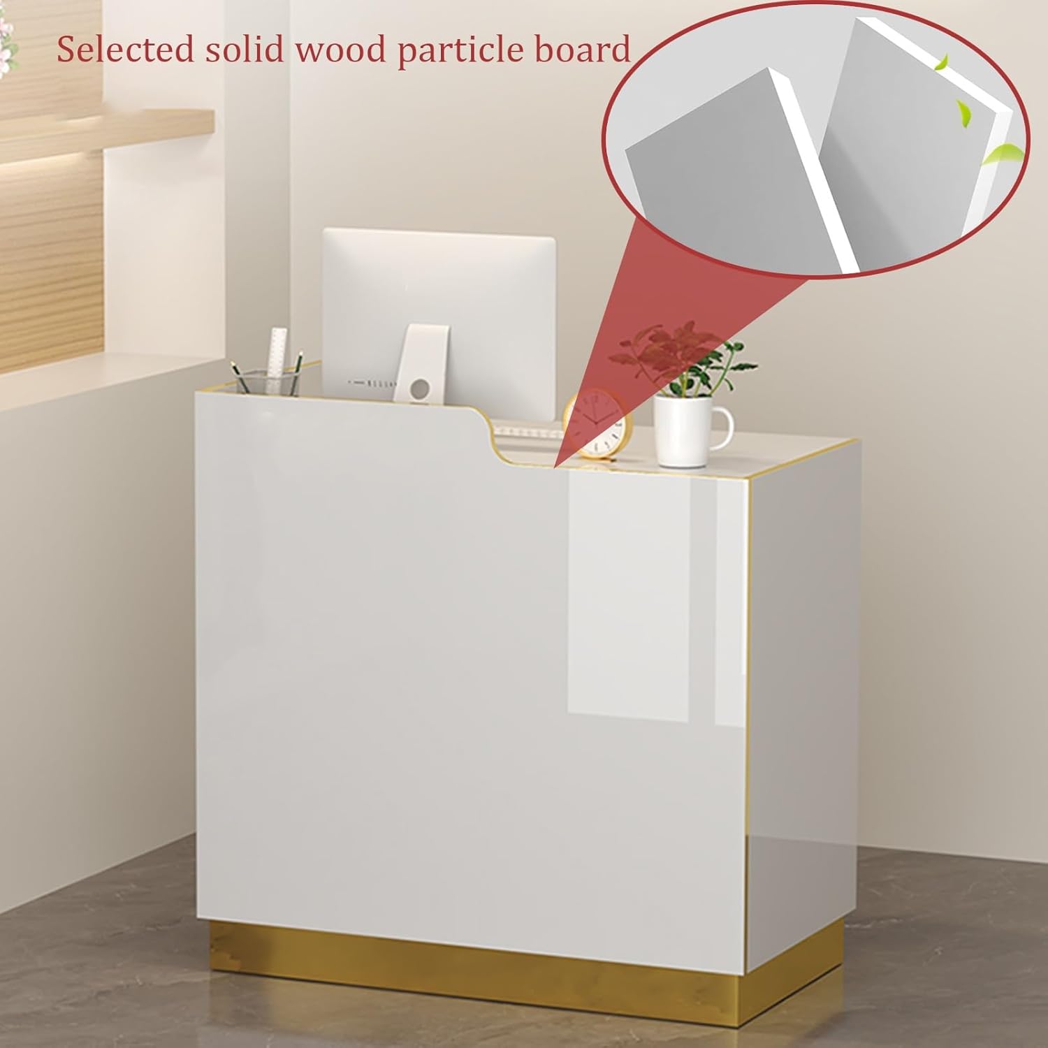 HOLGVE Suitable for a wide range of applications, our reception desk is perfect for use in various settings such as offices, retail stores, salons, and more. Whether it's for checkouts, receptions, or displays, our portable desk offers versatility to meet your needs.Product Name:Reception Desk/Front Counter Desk/Retail Counter/ With Led LightProduct Material:High-Quality Thickened High-Density BoardStyle:Modern And SimpleIs Assembly Required:YesPackage Contents:Reception Desk X1, Product Size: (LxWxH)60x45x100cm/23.6"x17.7"x39.3", 70x45x100cm/27.5"x17.7"x39.3", 80x50x100cm/31.4"x19.6"x39.3", 90x50x100cm/35.4"x19.6"x39.3", 100x50x100cm/39.3"x19.6"x39.3", 110x50x100cm/43.3"x19.6"x39.3", 120x50x100cm/47.2"x19.6"x39.3", 130x50x100cm/51.1"x19.6"x39.3", Notice:1. Note: Due to the particularity of the furniture, there will be slight errors in the finished product, which is normal. The data is for reference only and must be based on the actual product. We hope for your understanding!2. While we display colors as accurately as possible, due to differences in computer monitors, colors may vary.
