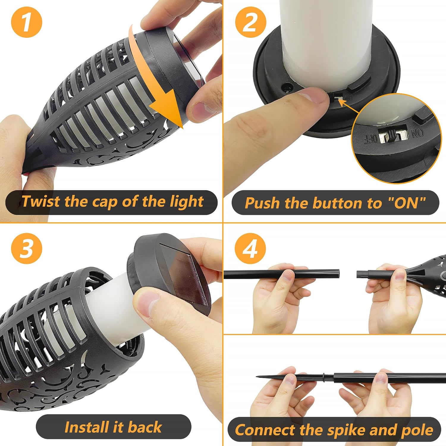 | Included Components | 8Pcs*12LED Torch Solar Lights, 8Pcs* Longer Plastic Pole, 8Pcs* Plastic Ground Spike,1Pcs*Instruction Manual |