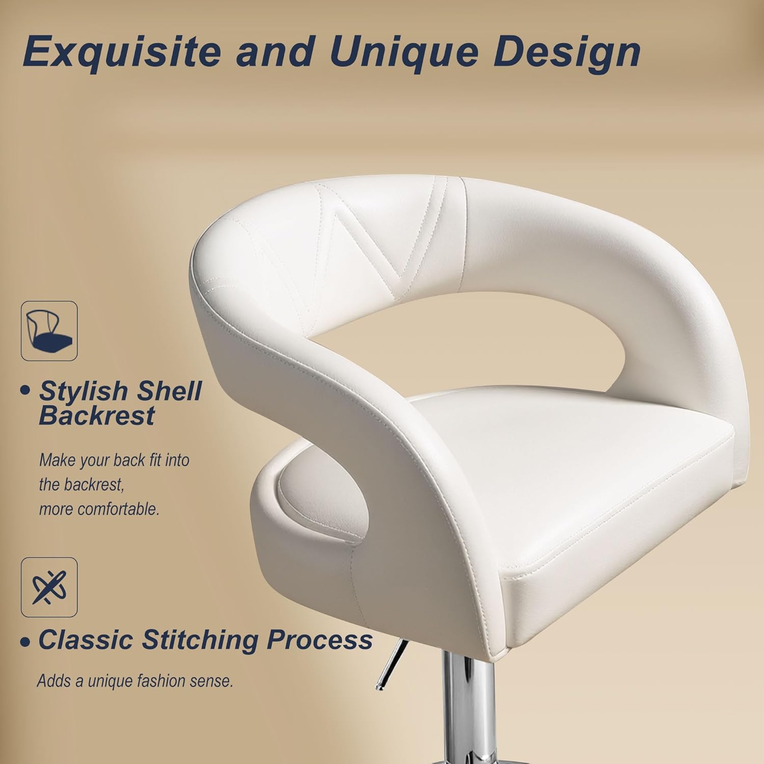 VECELO Adjustable Swivel Barstool Pu Leather Bar stools, Modern Bar Stools Set of 2 for Bar, Kitchen, Dining Room,White. Ideal Stools for Bars, Kitchens, Cafes, Restaurants, Offices and More, Perfect for Decorating Your Space. Specifications: Color:White Material: PU+Metal Frame Back Dimension: 16.5" x 8" Item Weight: 33.2lbs Max. Weight Capacity: 330 LB What You Will Get 2 x Bar Stools 1 x Accessory Kit 1 x Instruction VECELO Notes: Avoid letting children climb on the bar stools unsupervised. Ensure the stools are placed on even surfaces and regularly check for loose screws. Clean with a soft, damp cloth, and avoid corrosive chemical liquids and inferior chemical cleaners contact the surface, causing surface fading, aging, cracking, etc. Avoid sharp knife contact the surface to prevent scratches. VECELO provides 24-month warranty and 30-day free return service, if there's any problem with the products you received, please feel free to contact us to get free replacement parts or a brand-new item. Email:support@vecelo.com Website:www.vecelo.com