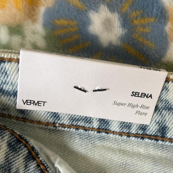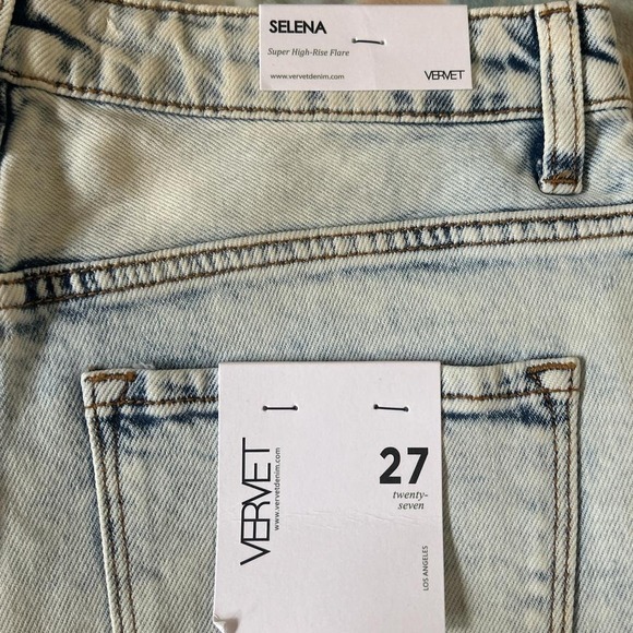 Vervet Selena super High-rise flare, light wash distressed denim jeans women's 27 NWT