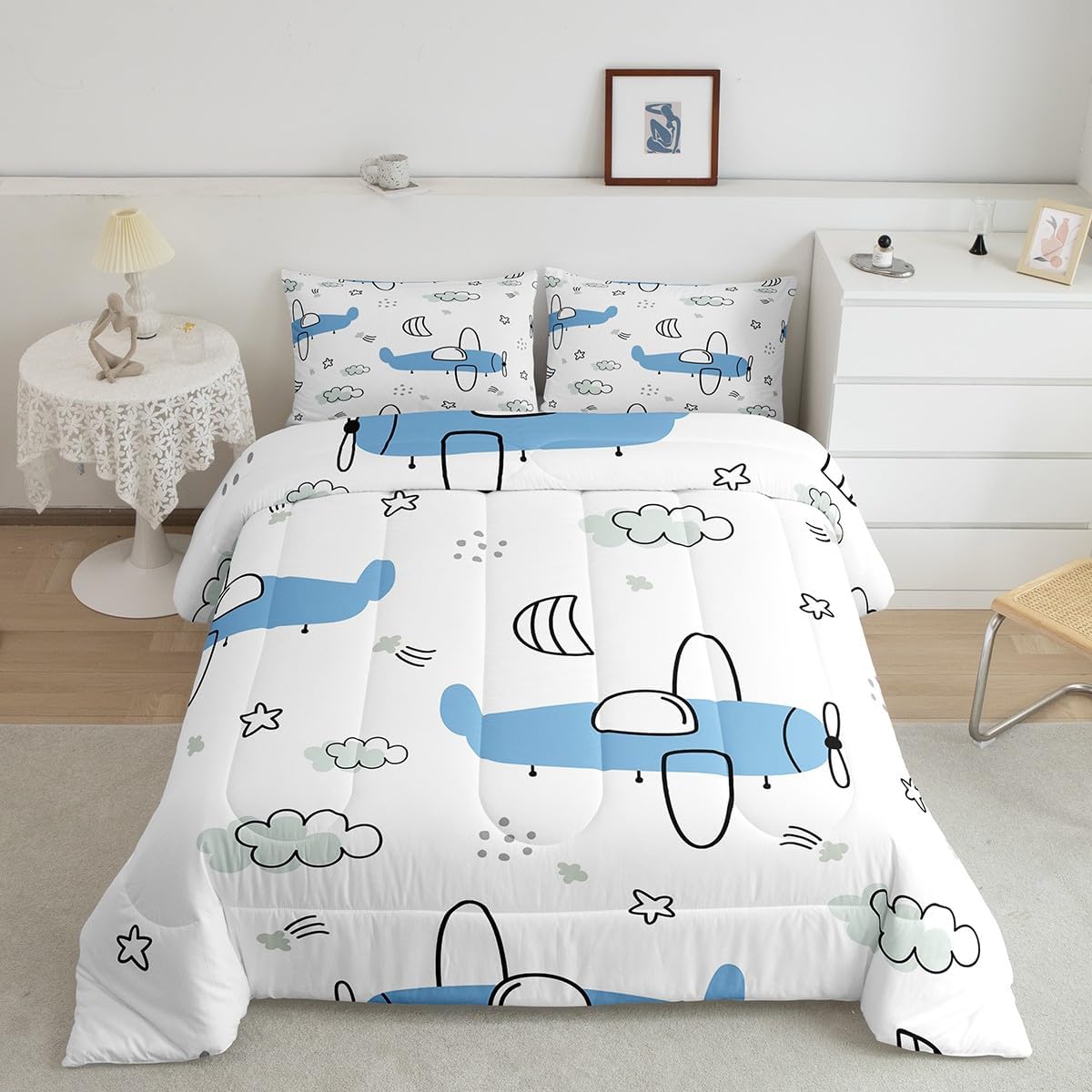 Best blessings: Makeover your bedrooms every season with our Comforter sets. Perfect item for your room, girls boys youth room, master bedroom. Also can order it for your mom, dad, sister, brother, grandma, wife, husband, daughter, son and all other beloved. Size Information: 1 x Twin size down comforter 68"W x 90"L, 1 x quilted pillow case 30"W x 20"L, 2pcs. 1 x Full size down comforter 79"W x 90"L, 2 x quilted pillow cases 30"W x 20"L,3pcs. 1 x Queen size down comforter 90"W x 90"L, 2 x quilted pillow cases 30"W x 20"L,3pcs. 1 x King size down comforter 104"W x 90"L, 2 x quilted pillow cases 36"W x 20"Lx,3pcs. Useful and practical: A luxurious product for homes, dorm rooms, hotels, guest rooms. Practical to use for being polyester, feels like cotton which is super soft and breathable. No chemicals used, No dye substance harming the health of you or your family. Unique design: Vivid Colors won't fade thanks to new 3D digital printing methods. These unique designs match well with various color palettes of your rugs, curtains, headboard, furniture, and all other decor accessories. Personalized: As manufacturers of digital printed home textiles, we follow current trends and bring you the latest home fashion. You can give it to your family or friend, relative or boyfriend girlfriend, or to yourself, the item should be interesting and authentic. Note: Machine washed in cold water. Do not bleach, Tumble dry low. The Bedspread and Pillow Shams are printed on the Front Side Only.